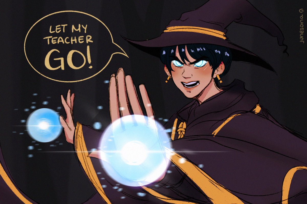 Ok so here’s witch-in-training Jungkook from @maithism ‘s newest magic AU 🔮 trying to save his powerful teacher, Yoongi, from some great evil! Btw, None of this is cannon, I just love the design and I wanted to draw kook using powerful magic 🥺💕 #jungkook #btsfanart #bts