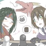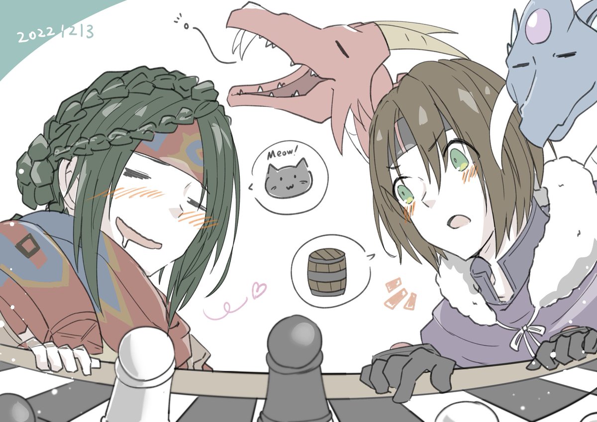 #スターオーシャン真剣お絵描き60分一本勝負 ヴァルカの闇・航海日誌「ボードゲーム大会」の2人+30min 「はっ! この盤面…上から見ると猫の形に見えます!」 「え~? 僕はタルの形に見えるけどな~」