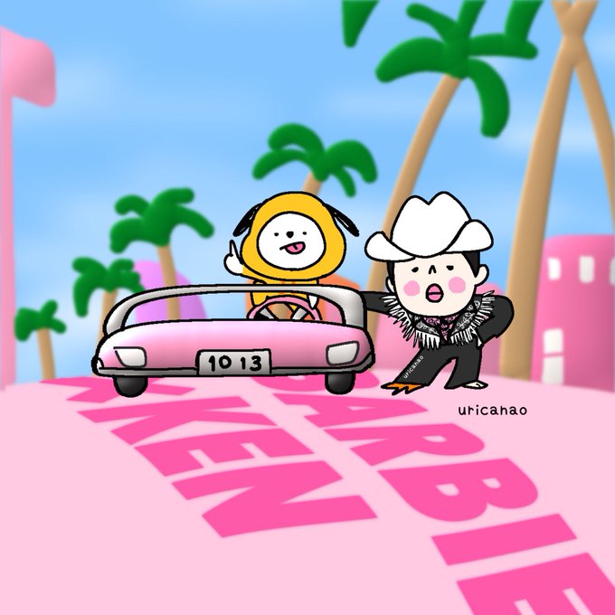 ライアンゴズリング氏が🐥先輩にPTDんときの衣装かぶっちゃってスマンて言ってるらしくてつい描く illustration by uri @junguccivliton7 #BarbieTheMovie #みたいコレ #btsfanart twitter.com/rollingstone/s…