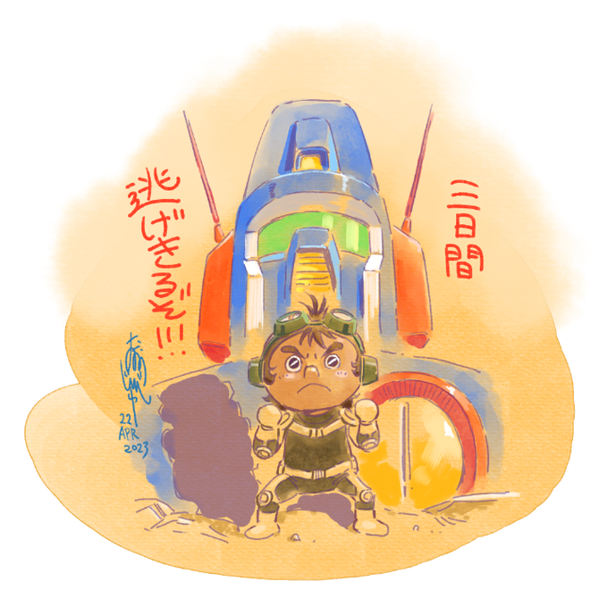 42 125 今日はザブングルを観る、というより聞きながらの作業。三日間逃げ切ると、罪は帳消し。逆に逃げ切られたら、たまらんぞ、な世界。本日16話までなので続きは明日。 23/04/23 15:39
