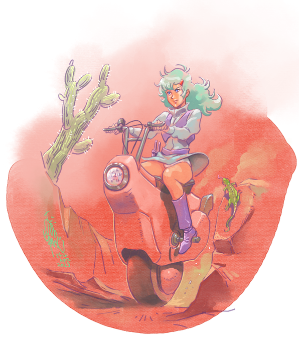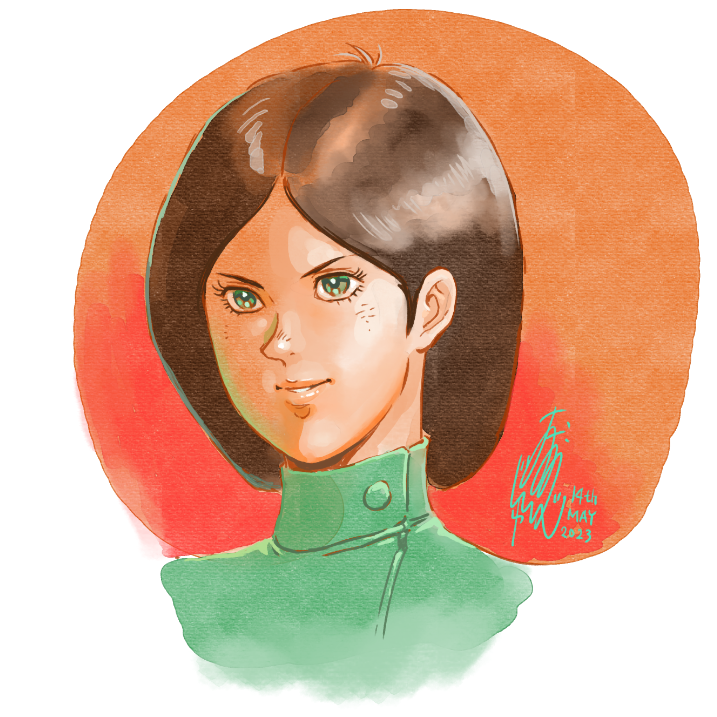 94 245 「ガンダムF91プリクエル」今月もガンダムAに掲載してまぁす。セシリーのドレスのフリルが難しい。ふわっとしたスカートも難しい。肩のふわっとしたのも難しい。書きなれないものは難しい、しおしおしてないで精進精進。そんなこんなでよろしくですー。 23/05/26 11:55