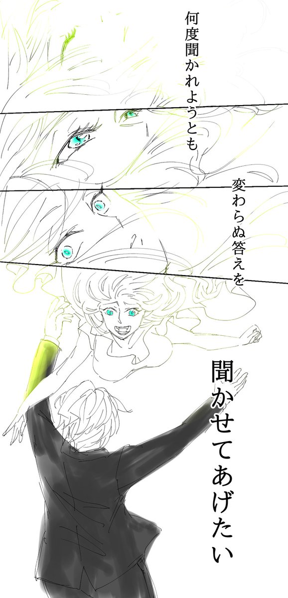 #このタグを見た人はラフ画とその完成絵を見せる 自分の中で一番綺麗に塗れたジェイド