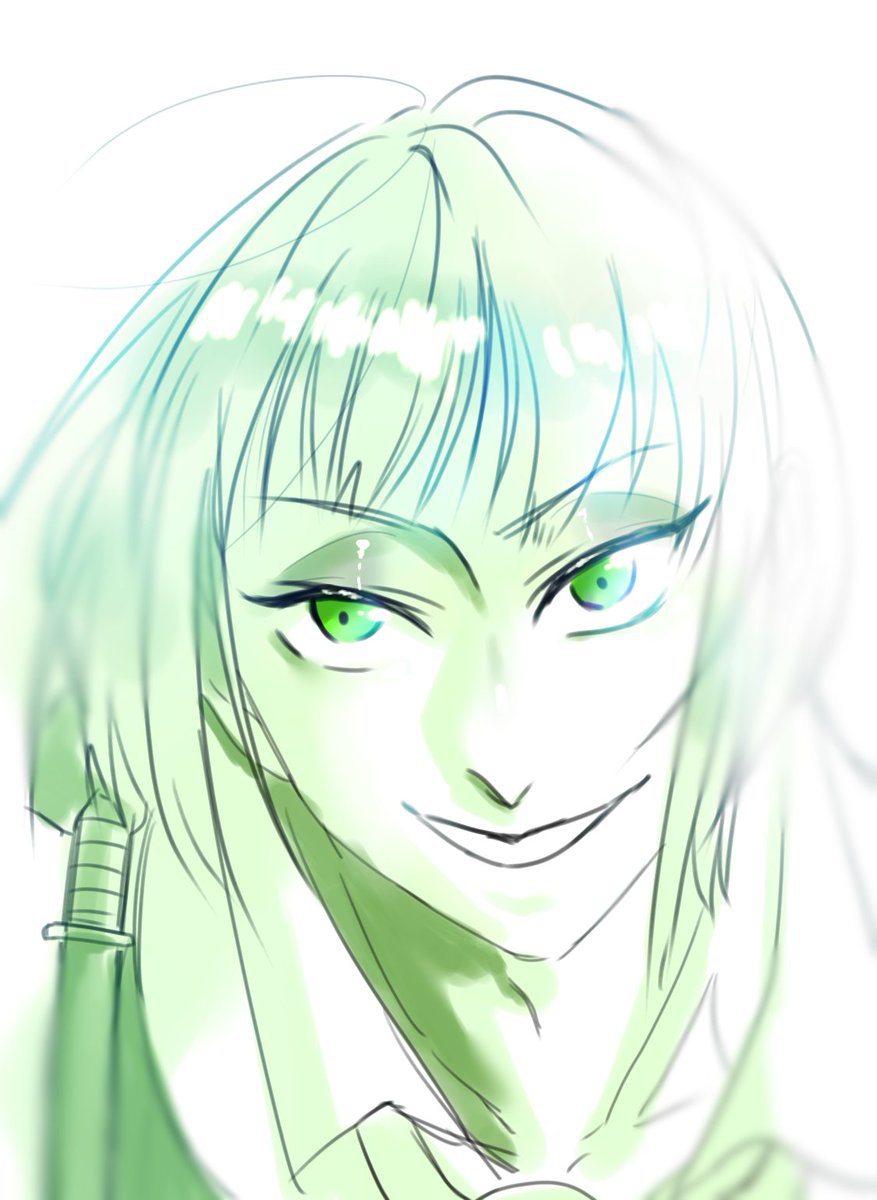 0 1 #このタグを見た人はラフ画とその完成絵を見せる 自分の中で一番綺麗に塗れたジェイド 20/09/02 12:09