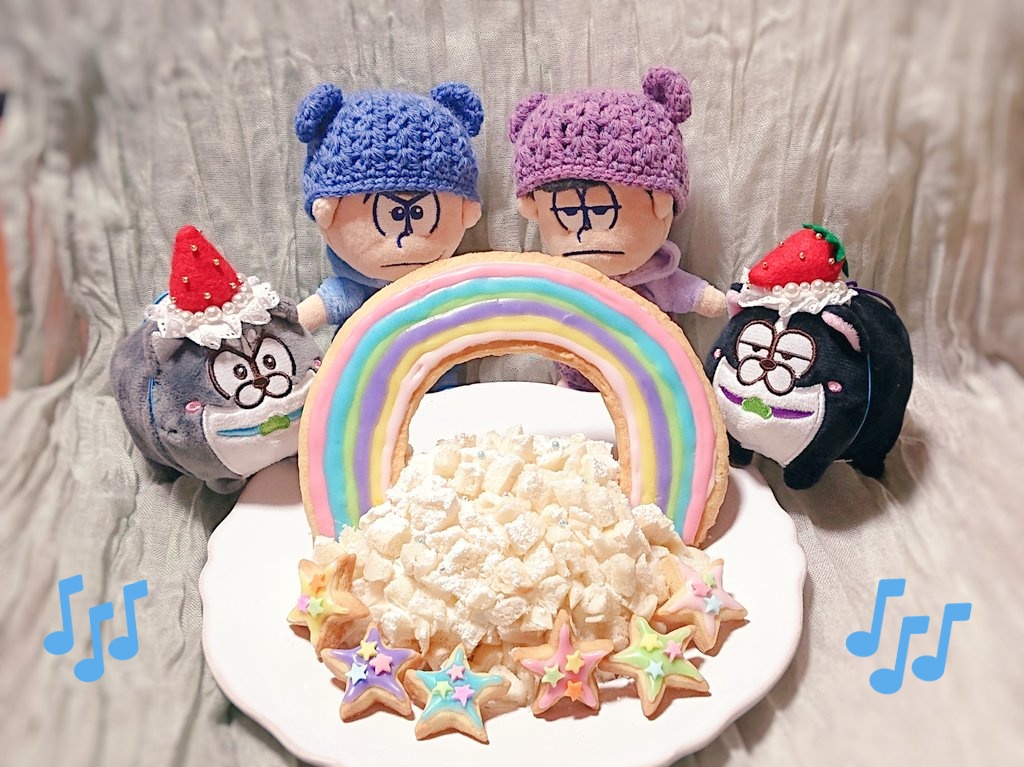 25 99 #松野家六つ子生誕祭2021 後れ馳せながらケーキ作ったので、ささやかなぬいパを……むつごハッピーバースデー!!! 21/05/26 12:15