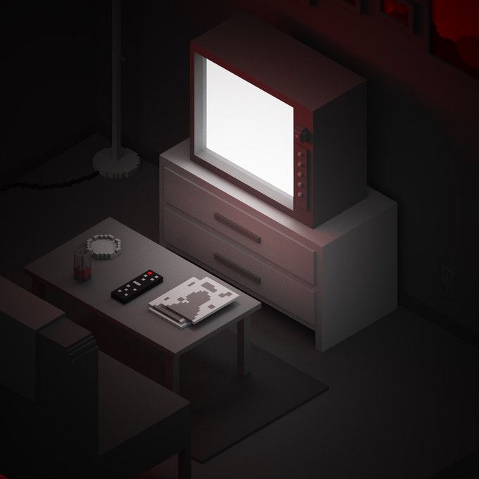 “Throne of broken promises”. Here I sit on a throne of broken promises. Not to anyone else but myself. Debilitatingly comfortable. Unable to move. Available soon on @makersplaceco #nftart #makersplacenft #voxelart