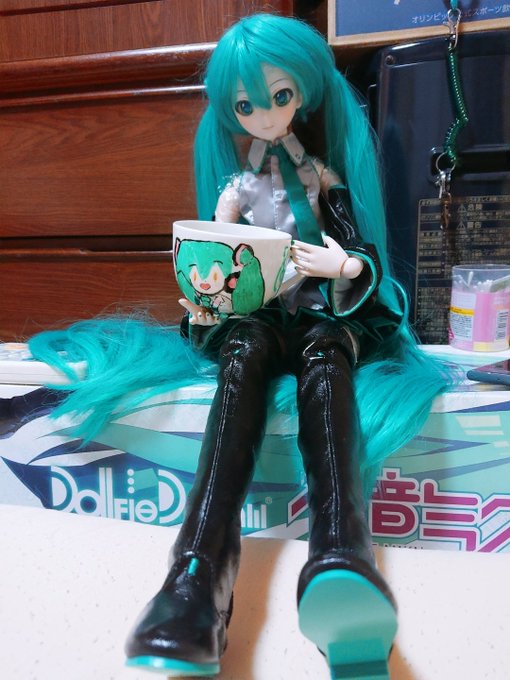 こないだ、施設でマグカップに初音ミクの絵を描いたのですが、そのマグカップを使ってドールミクさんに持たせたらかわいいかったので、コスした状態で、初音ミク・マグカップを持ってみました かわいいかなぁ? #コスプレイヤーさんと繋がりたい #コスプレ #コスプレ初心者さんと繋がりたい