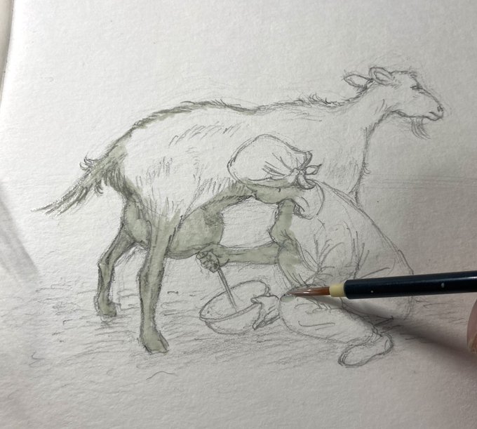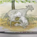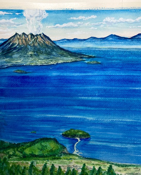 6年前にオリジナルソング♪の動画用に描いた即席の 水彩画です✍️😊✨ (画質低いので込み入った線と色が半減していますが...原画が見当たらないので🙏) #見た人もなにか無言で2人組をあげる #水彩画