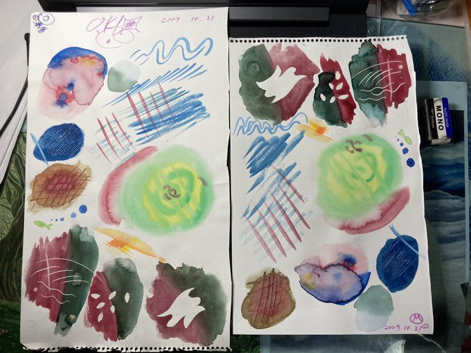 いまどうしてる? HPに載せる写真を探していたら、多分紙のテストで色々やったやつ出てきたので...マスキングだったり、引っ掻きだったり...☺️ 🖼油彩の途中絵100号は 渋谷に越して行った息子の部屋が空いたので、そこに追いやられたままです😂 #水彩 #油彩画 #Watercolor #oilpainting
