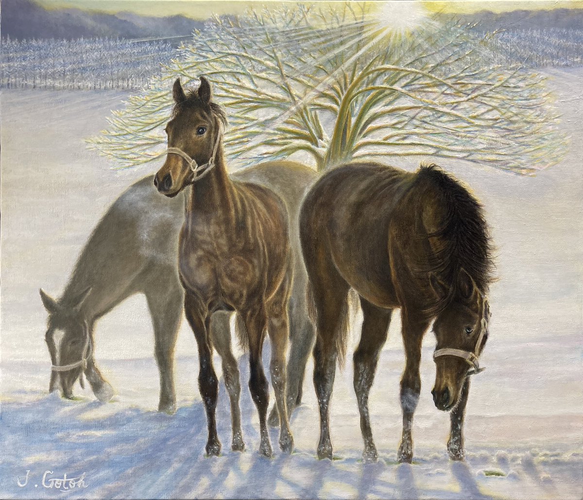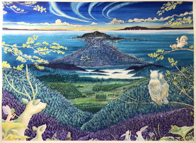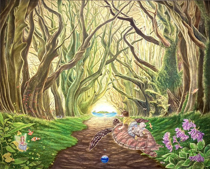 #今までで作画カロリーMAXの作品上げようぜ 油彩始めた年に描いた 100号(1620×1303)の 油彩画🖼 絵の中には12種類もの生き物が...🐿リス君も✍️ 子供達の集まる場所に飾られています☺️#oilpaint #油彩画 #物語の中へ #イギリスダークヘッジより