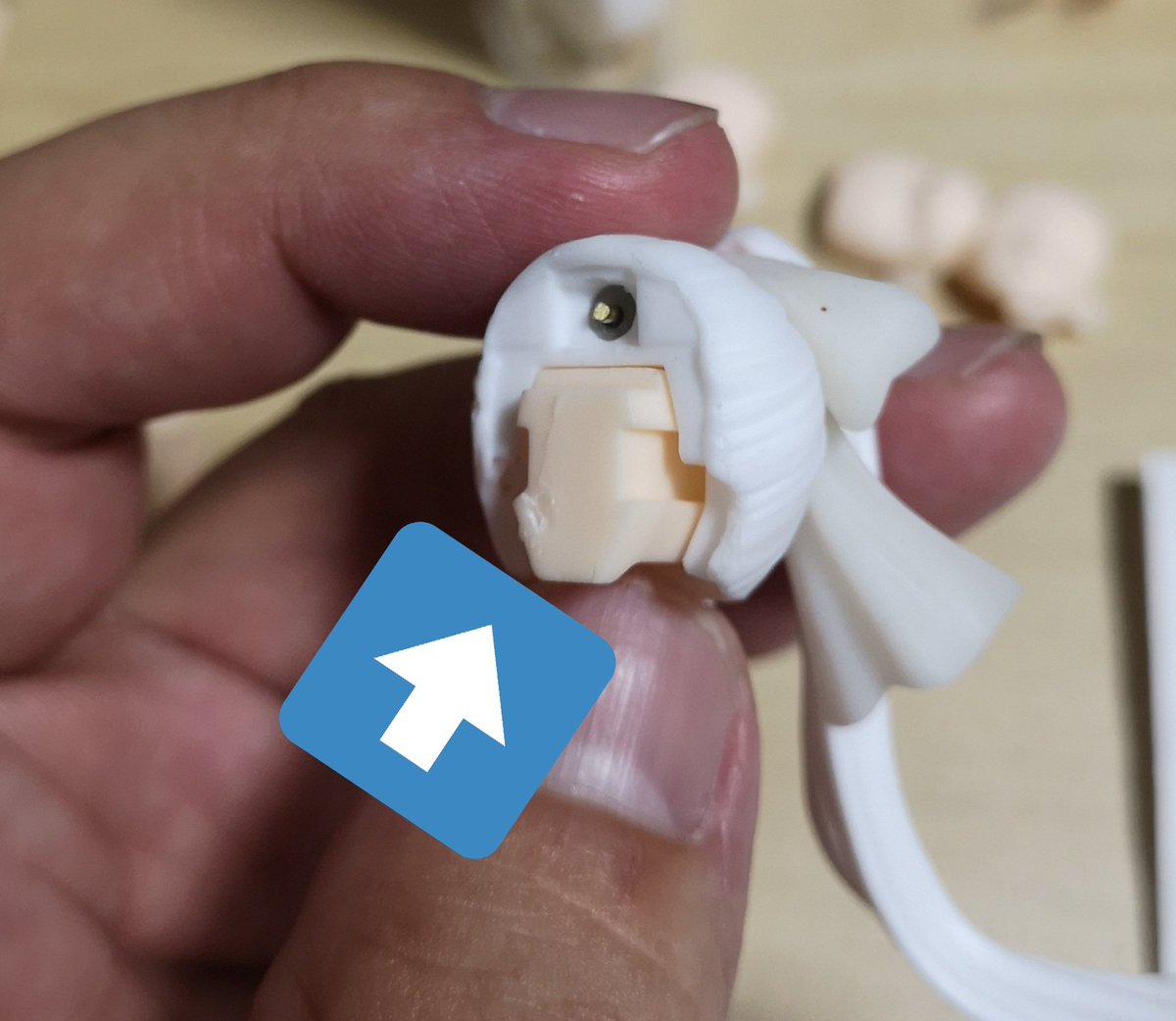 千香璃ヘッドとりあえずネオジム入れて形にできて一安心。 #アサルトリリィ #アサルトリリィドール部 次はとりあえず部品名がわからないけど、フェイスの軸と後頭部の接続隙間が大きくぐらつくのでどうしようか迷い中。 パテもりかな? twitter.com/junshihayase…