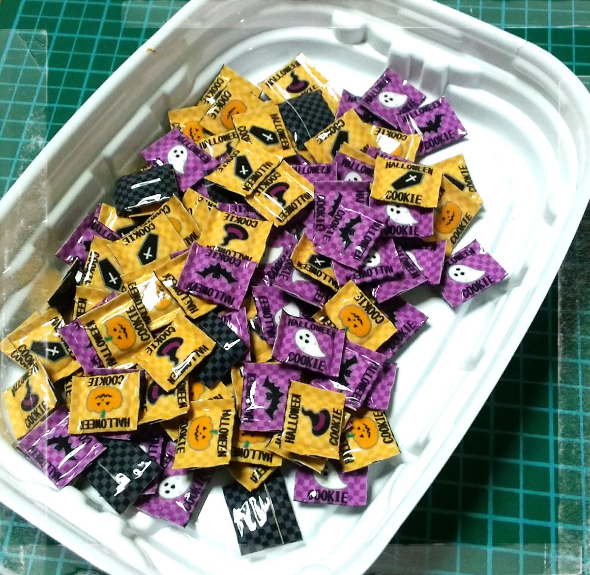 やっとハロウィン用ミニチュアクッキーの箱の中身(個包装のクッキー)が出来たー😄 てなわけで、サッサと次の作業行くぞっ❗❗