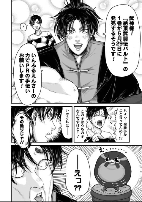 「絶頂武闘伝バルト -バカでもなれる人類最強-」連載始まりました! 初めての格闘漫画なので緊張してますがよろしくお願いします!! ばとちゃんも達もでてくるぞ…!! cycomi.com/fw/cycomibrows… #サイコミ