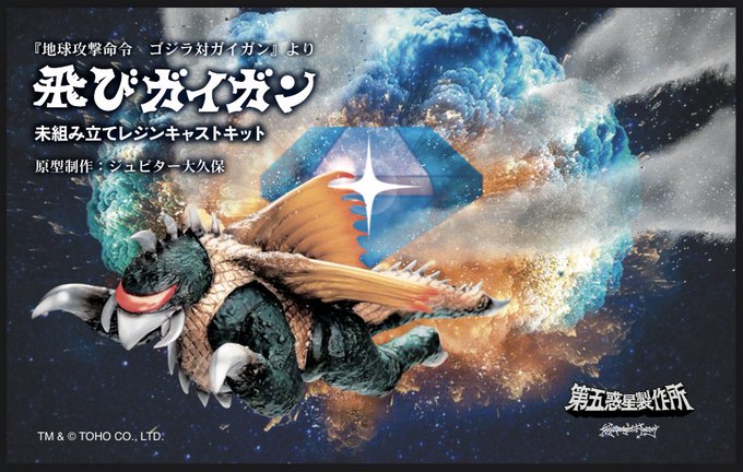 #WF2023S 告知その① 🆕『地球攻撃命令 ゴジラ対ガイガン』より ・飛びガイガン 10000円 (全長 22cm、頭部と台座のみクリアレジンとなります) 原型制作 ジュピター大久保 twitter.com/jupiterkumi/st…