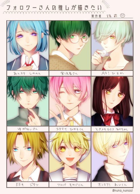 お待たせいたしました~✨☺️リクエストくださった方、ありがとうございます🙏久々にいろんなこ描けて楽しかったです☺️ テンプレお借りしております🙏 #フォロワーさんの推しが描きたい