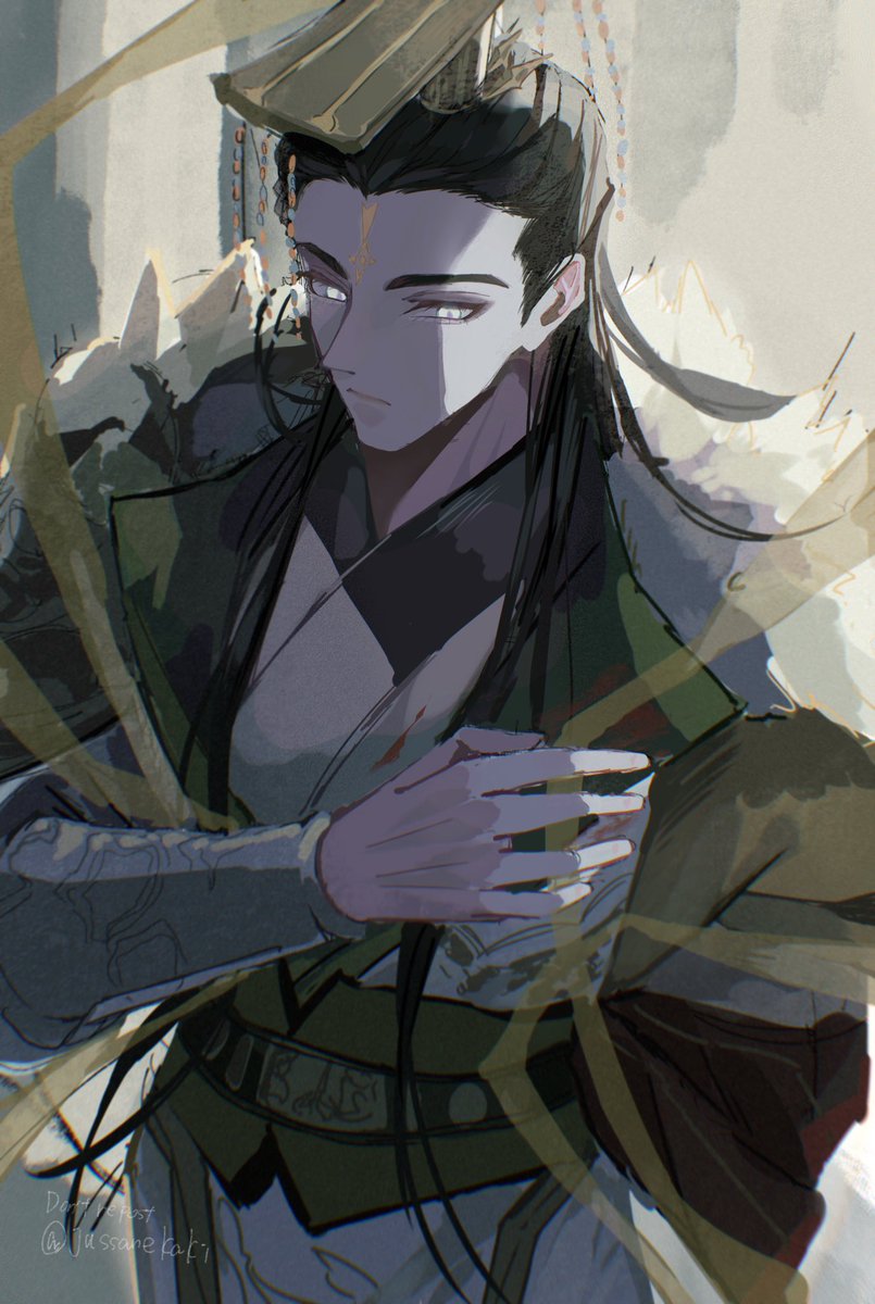 久しぶりにしっかり描きました🧐 いっつも趣味で赤目で描きがちだけど真っ黒の目の無常も好き👀 #第五人格イラスト
