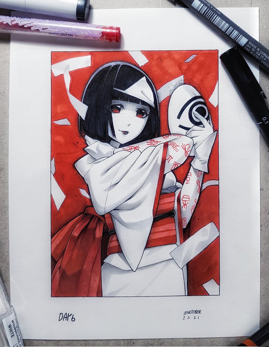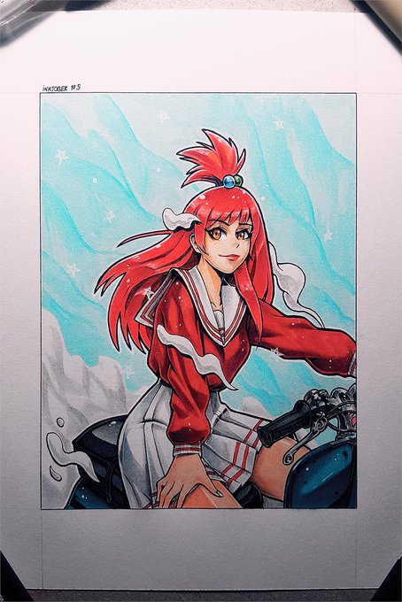 Day5: @webang111 's OC Artline/ Kuretake/ Pencils No helmet, oops! #boombza #inktober2019 #notmyoc