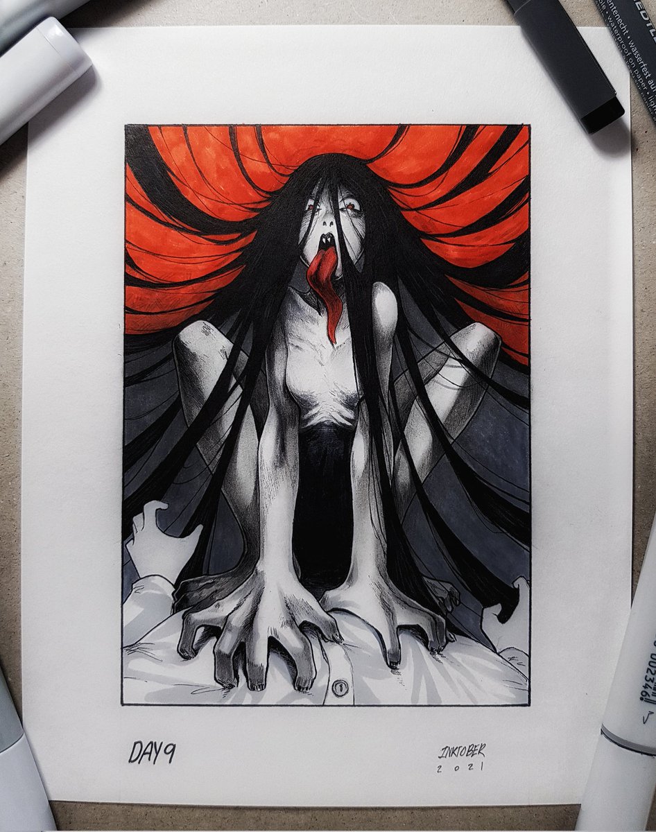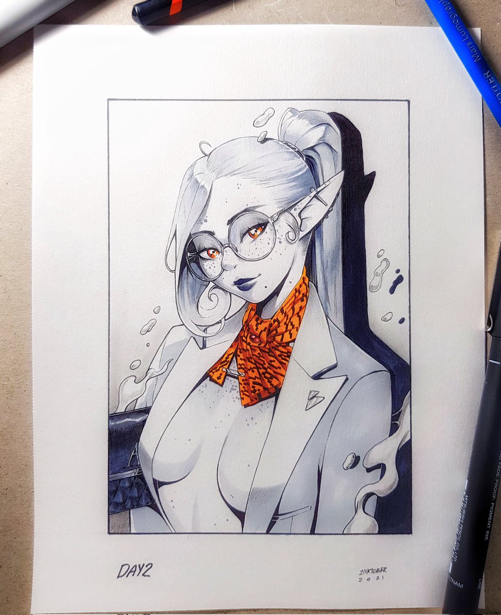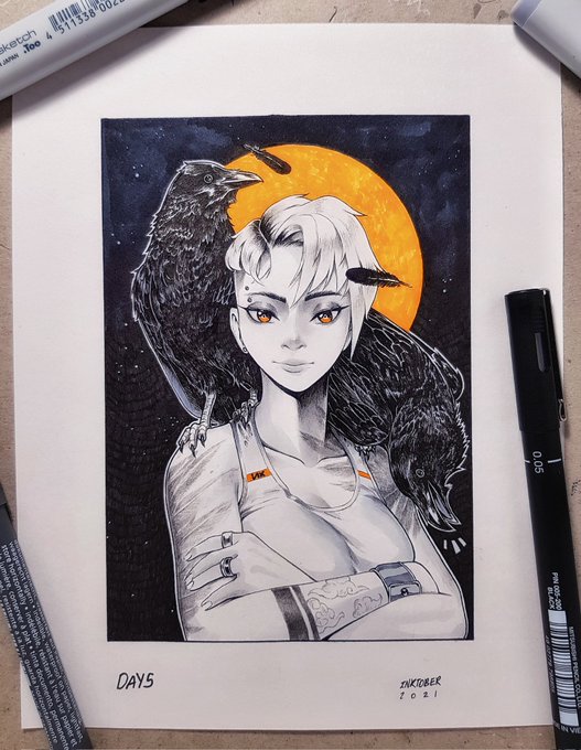 18. Happy Halloween! Artline/ Kuretake/ Copics + Pencils Imogen comes in to sweep up the last bit of spotlight for inktober. 18/31 🤷♂️ #boombza #inktober2019 #imogenlee