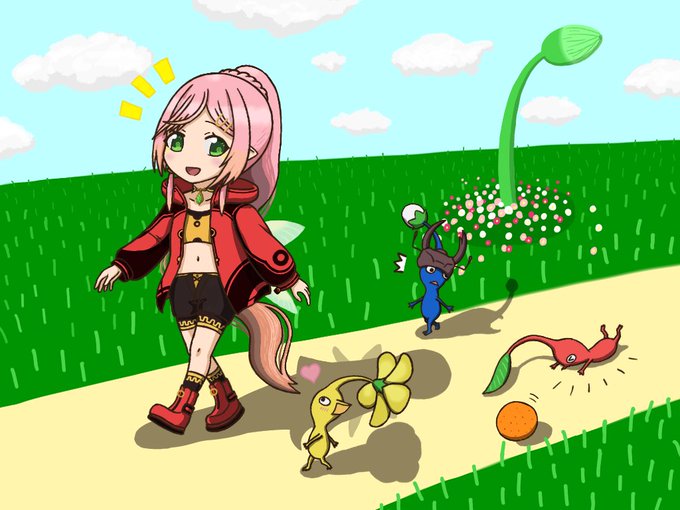 ピクミンと一緒におさんぽ羽衣ちゃん(∩ˊ꒳ˋ∩)🌱 #ひなの羽衣 #ひなういあーと