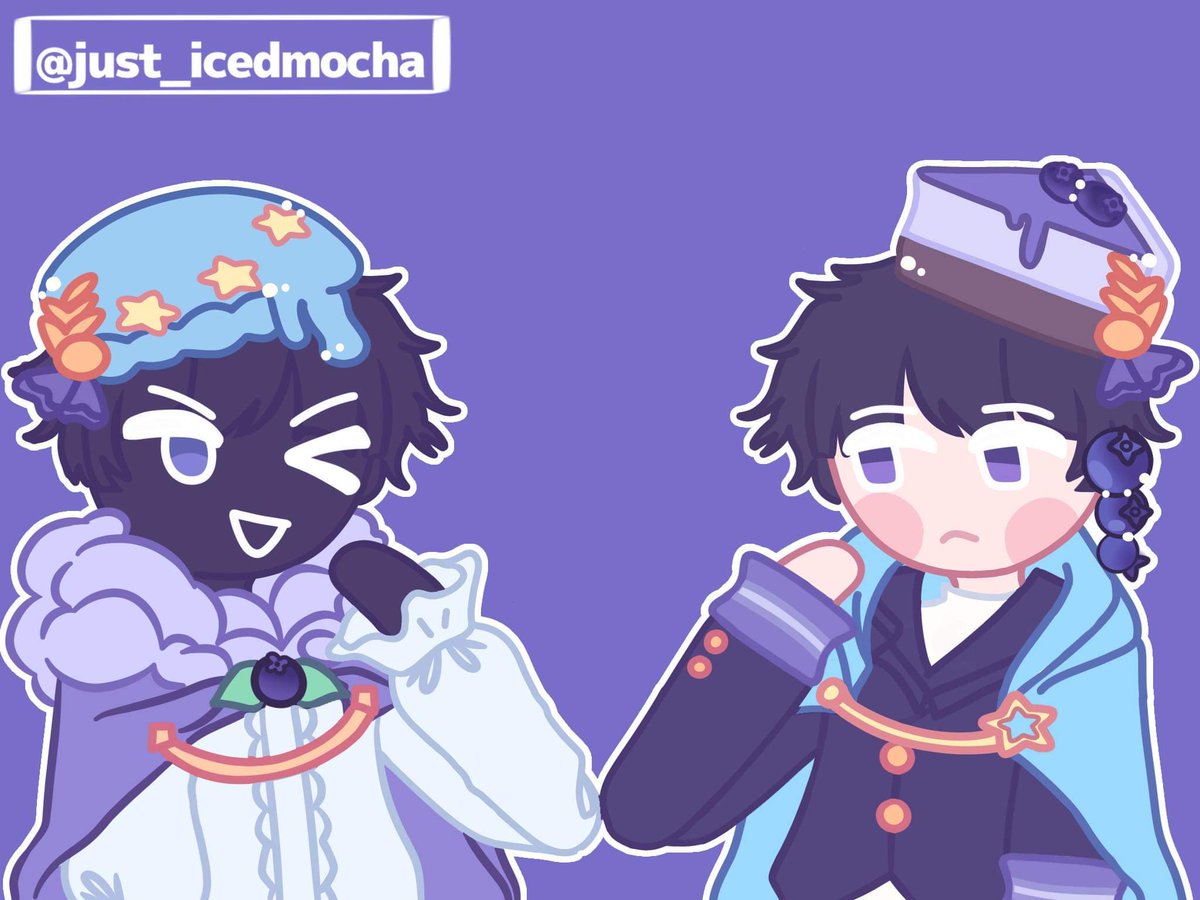 John-sama & Shaun As crk characters and in crk artstyle I switched their capes as a hc of mine, John’s hat is supposed to be a melty ice cream beret! . Meet blueberry ice cream cookie & blueBerry cheesecake cookie . #shadowshouse, #シャドーハウス #shadowshousefanart
