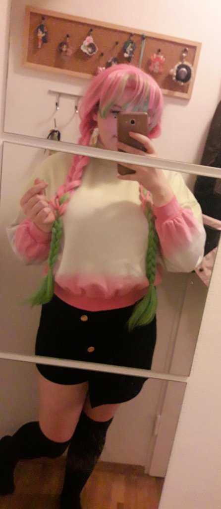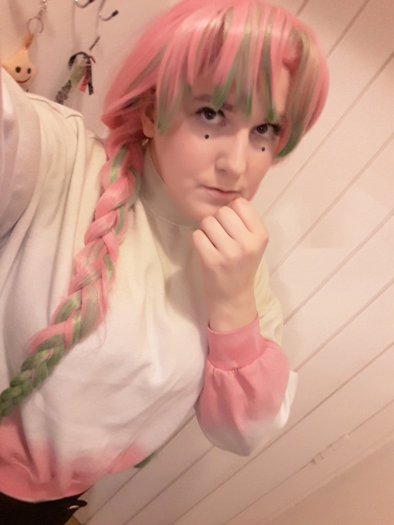 No but seriously. Here's my Mitsuri wigtest 💖 @xXGokuX borrowed me her wig so I could test if she fits me! I put on a matching outfit too~ #kny #kimetsunoyaiba #mitsurikanroji #cosplay #wigtest #costest #knycosplay
