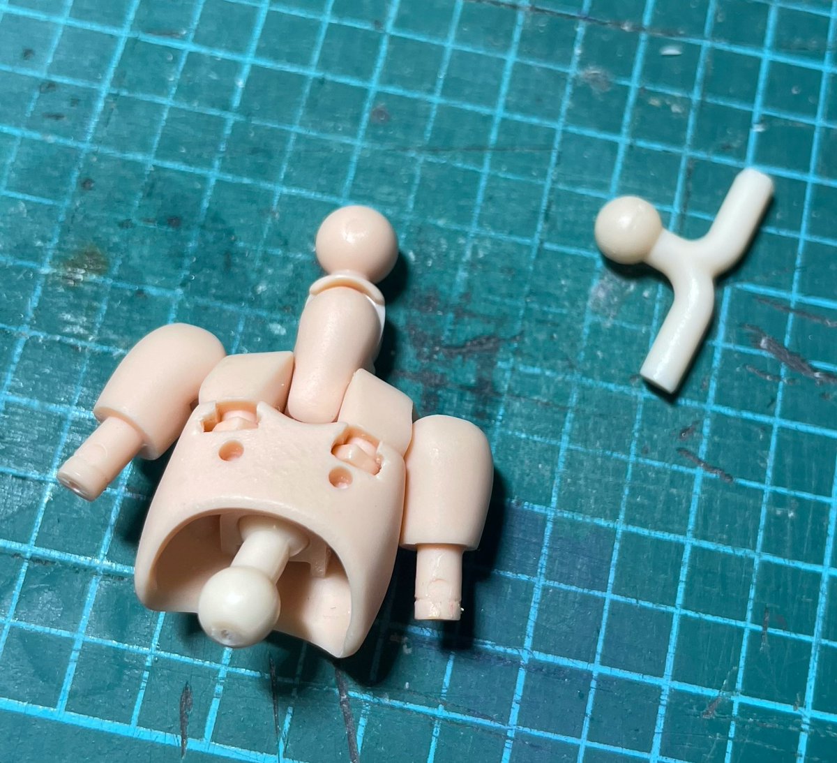 ATKガールの余剰パーツを切ったり削ったりしてたら、メガミの肌色腹部組めそうな展開になった件。 あとは足接続部の丸いやつが揃ったら出来てしまう… #ATKガール #メガミデバイス