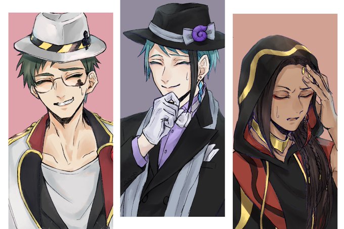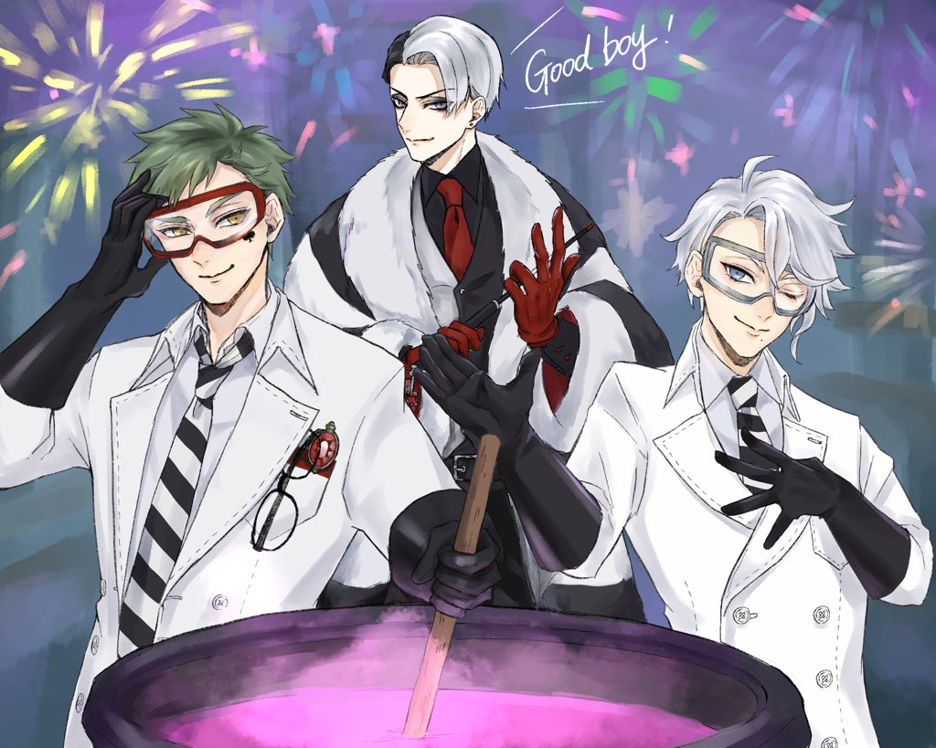81 814 #ツイステファンアート 錬金術が得意な眼鏡コンビ(トレイ、アズール)とクルーウェル先生 授業中のボイスで二人とも得意なのがめっちゃ伝わってきてかわいい… 20/04/29 17:05