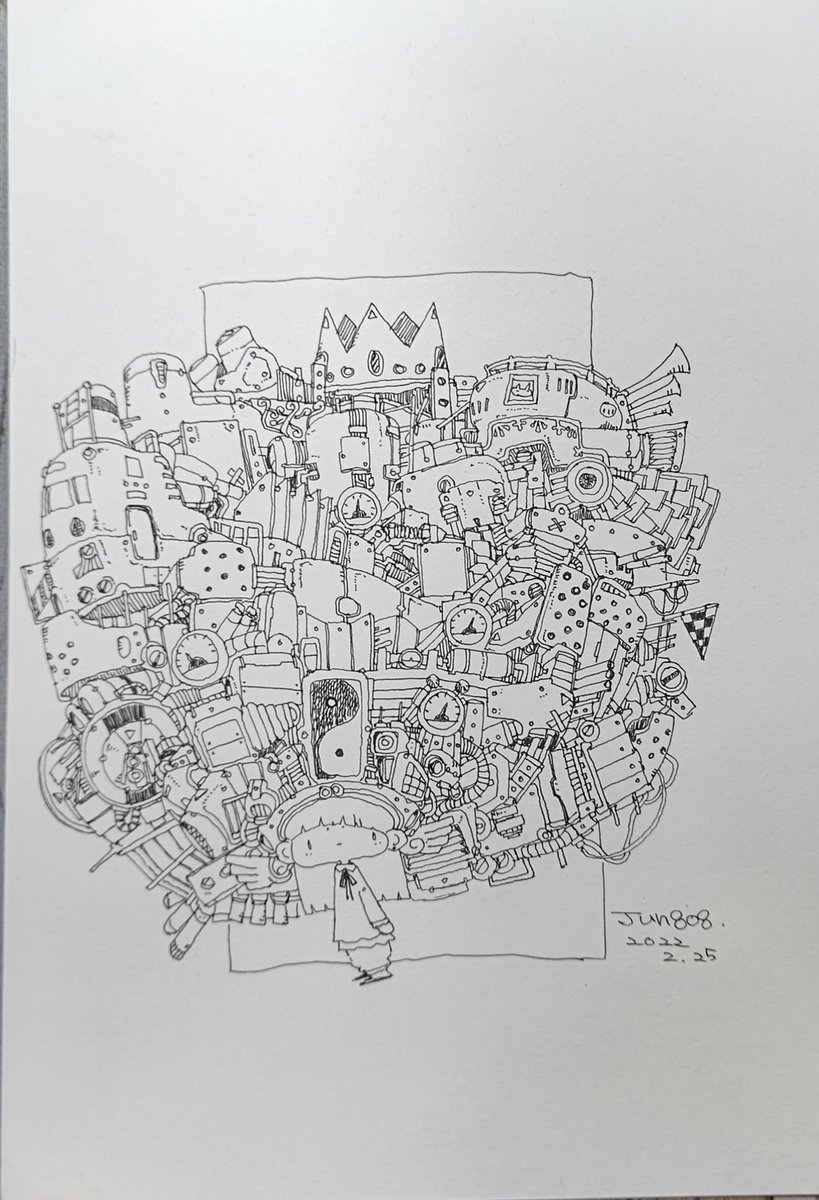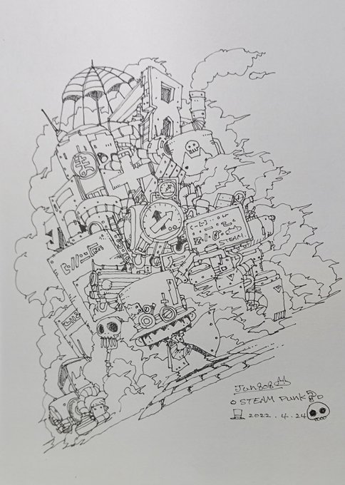4 34 久しぶりにA4お絵描き⸜(*ˊᗜˋ*)⸝ スチームパンクをモチーフにしてみました #ペン画を流してペン画民を増やそう #ペン画 #イラスト #お絵かき 22/04/24 22:16