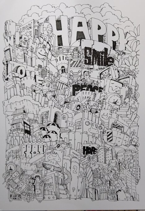 13 104 ちまちま積み上げてたA4が 埋まりました⸜(*ˊᗜˋ*)⸝ #ペン画を流してペン画民を増やそう #ペン画 #イラスト #お絵描き #モノクロ #落書き 22/05/08 15:58