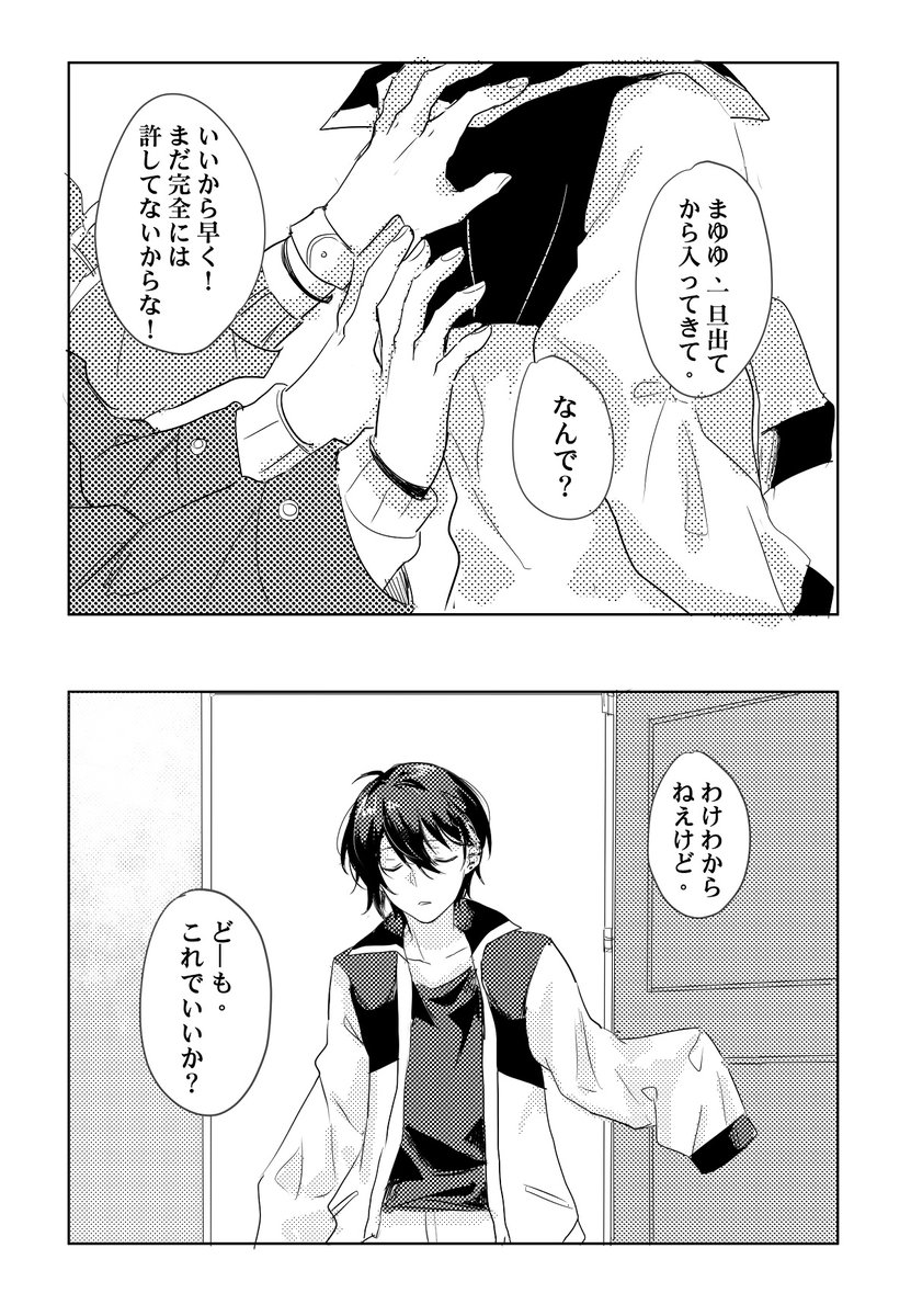 #絵スコート #さ絵ぐさ #灰画 「お帰り」 「ただいま」(2/2)