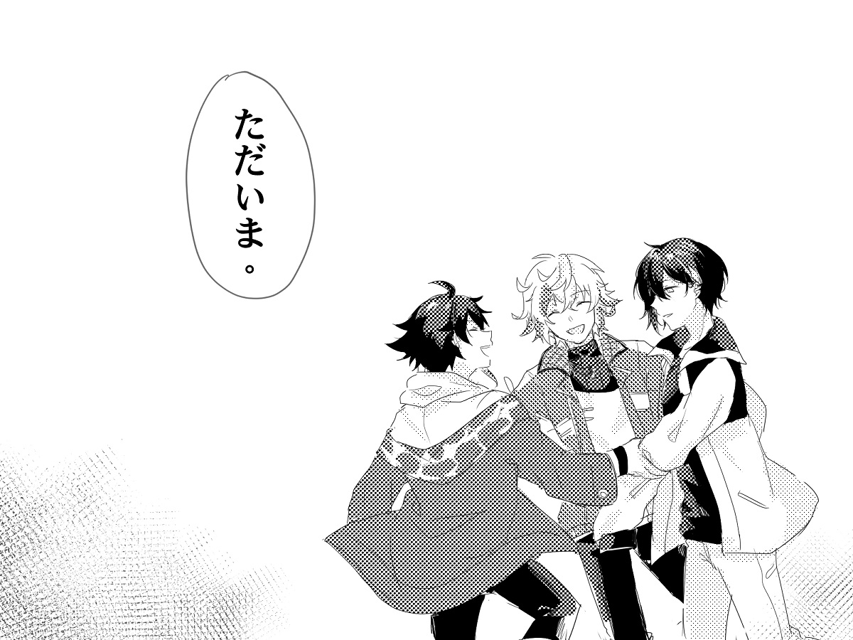 #絵スコート #さ絵ぐさ #灰画 「お帰り」 「ただいま」(1/2)