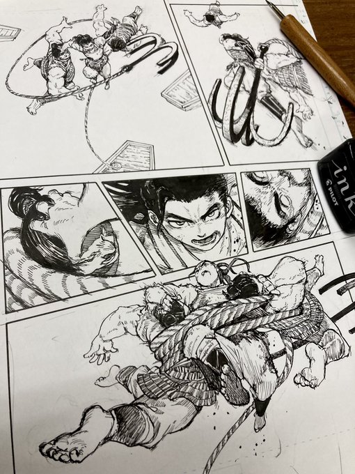 第5話完成しました。 源氏最強パワー、安芸兄弟とのマッチョな肉祭りで教経ラッシュもいよいよ最期です。 各漫画サイトでも投稿しています(プロフ欄参照) (1/3) #漫画が読めるハッシュタグ #漫画 #平家物語