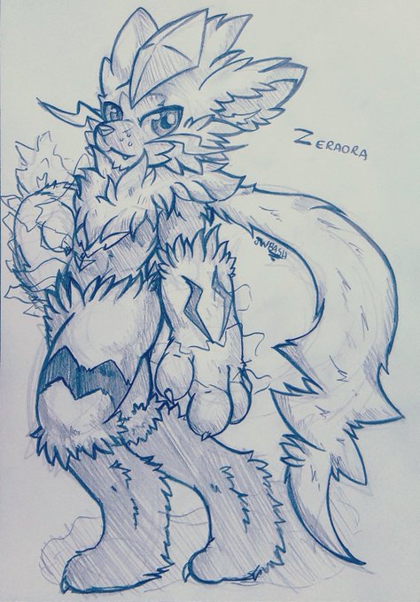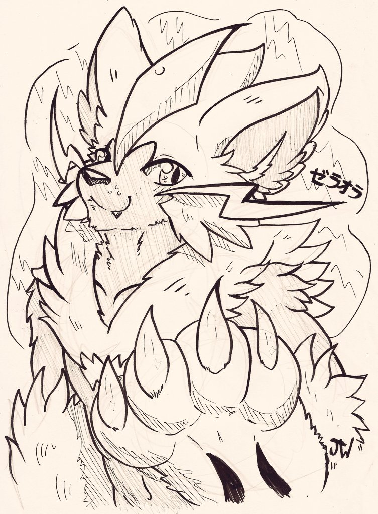 #ルカリオ #ゼラオラ #zeraora #traditionaldoodle #NationalCatDay #pokemon #ink Here's one little doodle :3