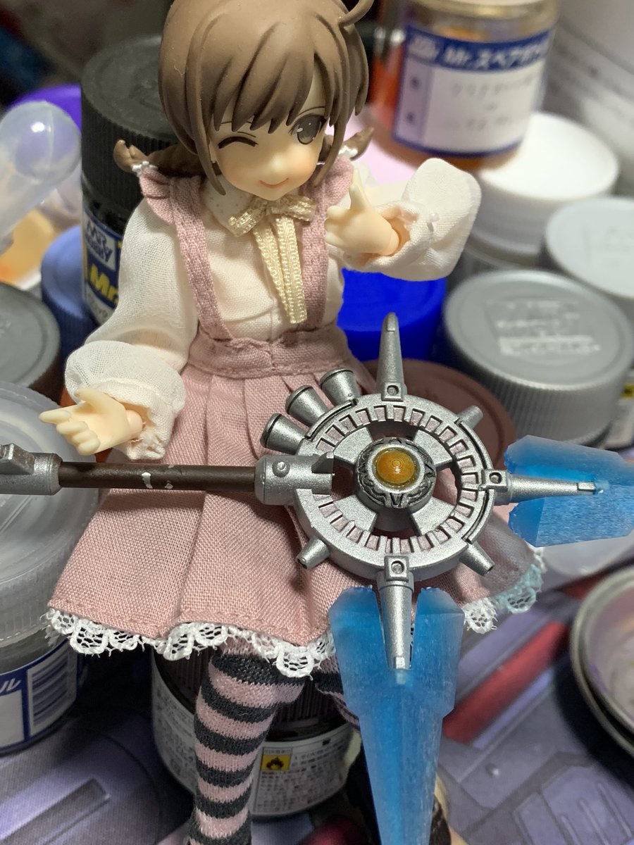 一昨日秋葉原工作室さんで1日作ってたゲイボルグ完成して秋口にAKガーデンで買ってきたものが全部作り終わりました! ガレキ初めてだったけど色々調べて楽しみながらやれたので💯 最後に千香瑠ヘッド+エレンスゲ制服+ゲイボルグでパーフェクト千香瑠ママ完成はい優勝! #アサルトリリィドール部