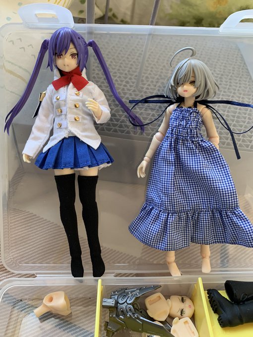 急にやる気が湧いてきたので残ってたフェイスパーツのデカール貼り〜( ◜ᴗ◝) 千香瑠の服もバニーから普通の服にチェンジ! 汐里チャン着てても似合ったけど千香瑠ママが着ても私服っぽくていいねアッアッアッ... #アサルトリリィドール部