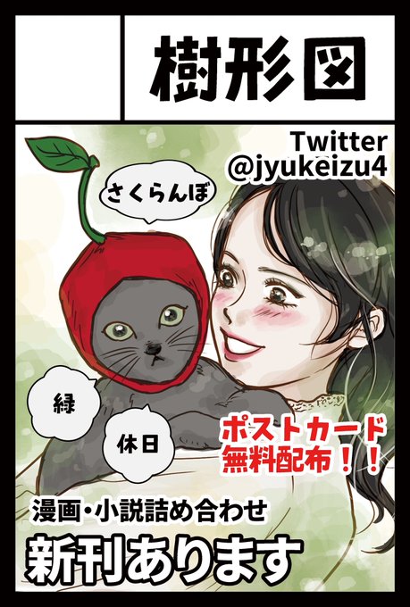 コミティア144のお品書きです!🌳🍒🐈 新刊の表紙イラストをデザインしたポストカードは無料配布いたします✨ 既刊と小説も持っていきますので、 【P50b】樹形図どうぞよろしくお願いいたします!! #コミティア144 #COMITIA144 #COMITIA144お品書き