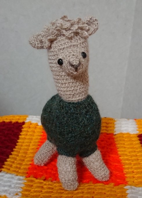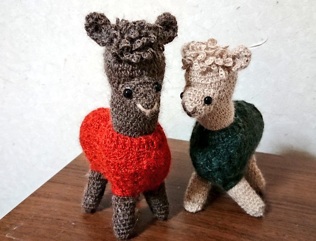 #ベビアル100 @atelier_mati @queito100alpaca #セーターを着たアルパカのあみぐるみ お母さんができたよ😃 同じキットなのに お母さんのほうがしっかり あめました。 2頭アルパカが編める キットでした。 楽しく編めました😃 #あみぐるみ