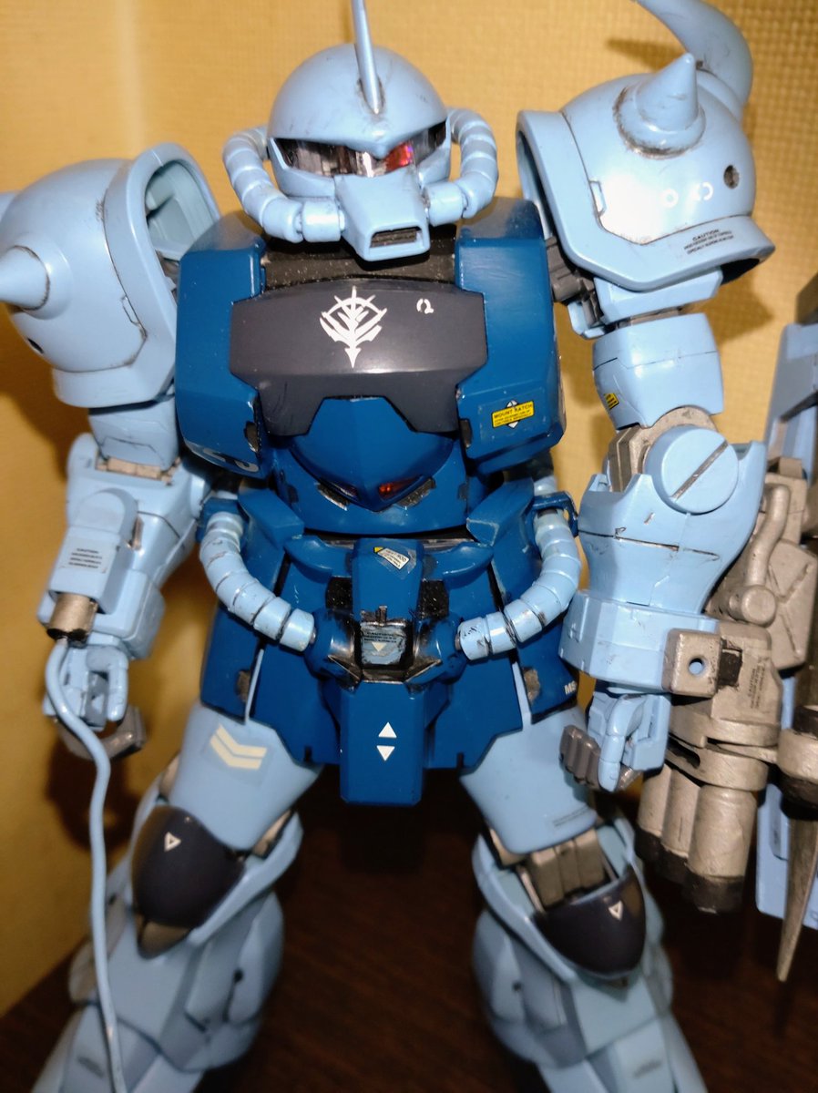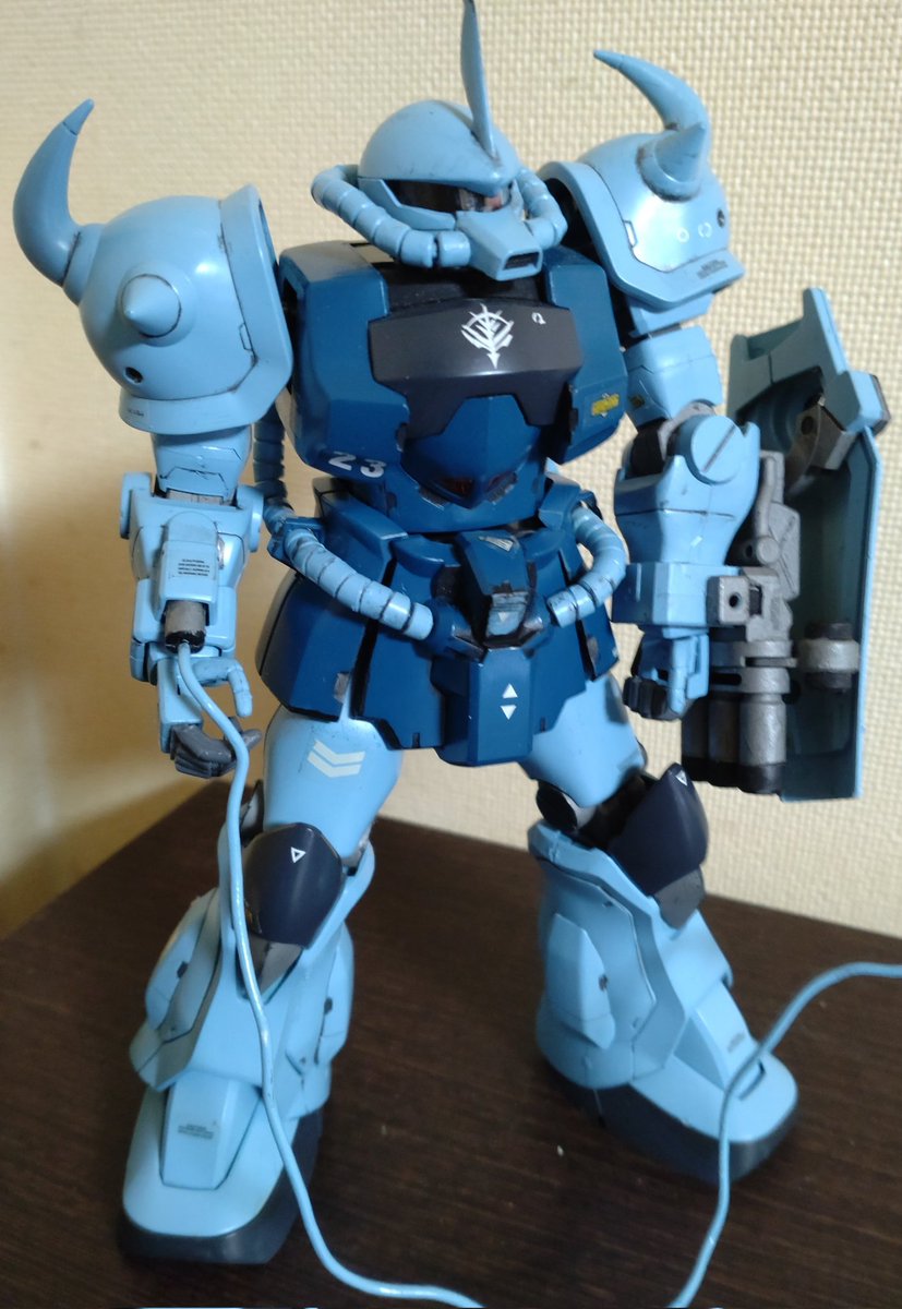 (;^ω^) ついでに過去作のMGグフカスタムです。 筆塗り全塗装で当時のオイラのお気に入りガンプラでした👍 モノアイ周りとかパテ盛りしてエッジ利かした顔付きに仕上げてます! #ガンプラ好きと繋がりたい #ガンプラの画像貼るとRTされると聞いて