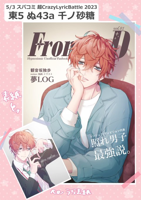 会場直接搬入にしたのでまだ実物見てなくて作った実感ないですが……無事完成したようなのでお知らせです!何卒よろしくお願いします😌🙇♀️ ▼5/3 スパコミ 超CrazyLyricBattle 2023 ▽東5 ぬ43a 千ノ砂糖 👔夢ログまとめ本🌸