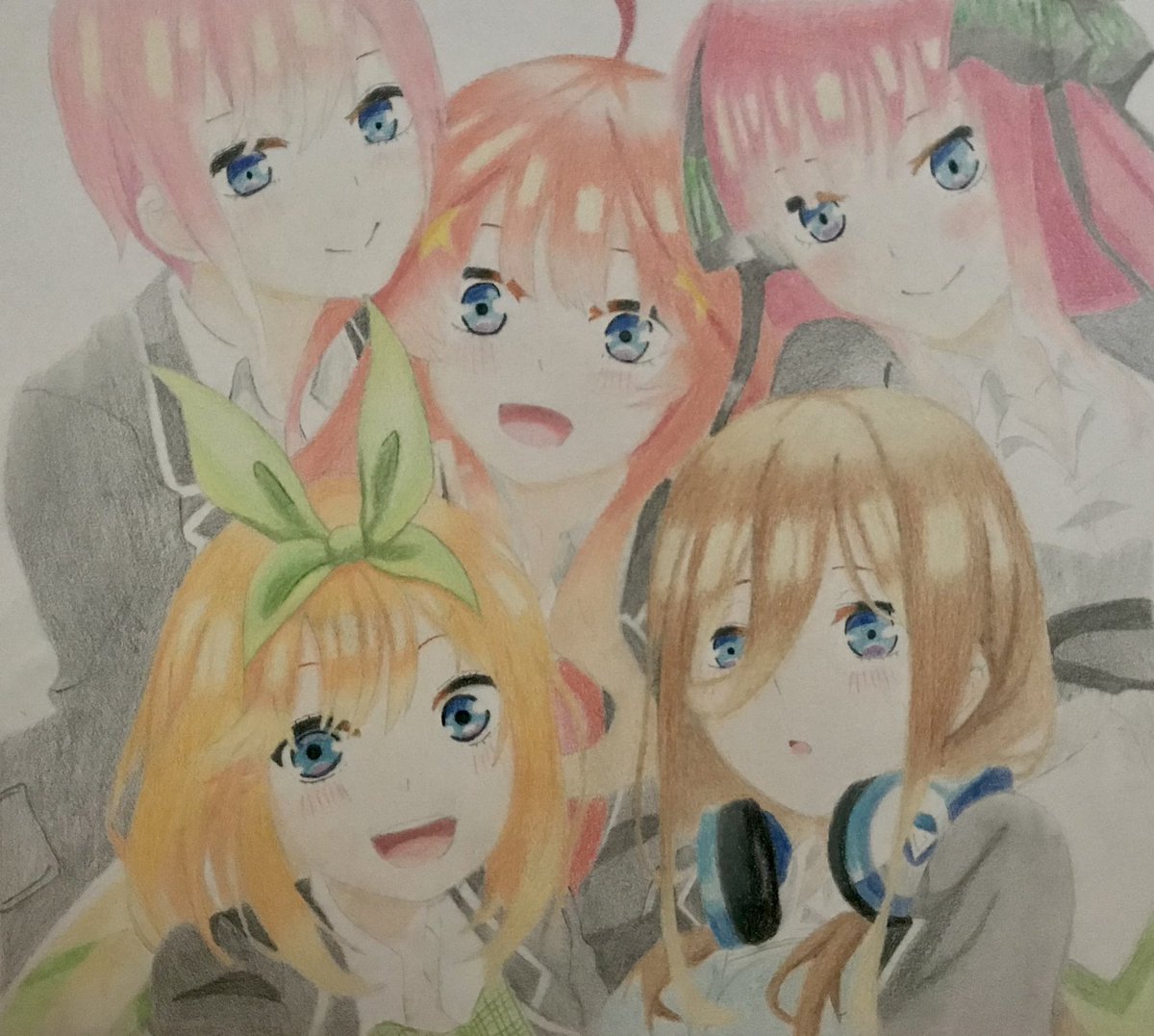 #五等分の花嫁 #一花 #二乃 #三玖 #四葉 #五月 #イラスト #イラスト好きな人と繋がりたい #絵描きさんと繋がりたい 製作途中(初の5人書き)