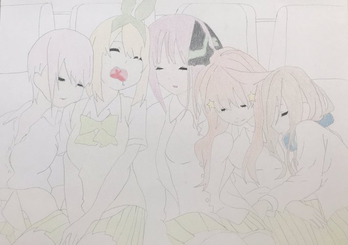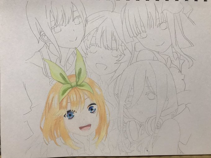 3 20 #五等分の花嫁 #一花 #二乃 #三玖 #四葉 #五月 #イラスト #イラスト好きな人と繋がりたい #絵描きさんと繋がりたい 製作途中(初の5人書き) 21/03/22 12:03