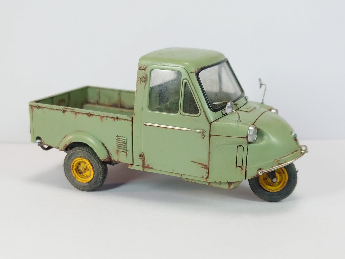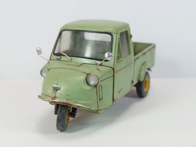 ミゼットの制作 錆びてるけど、まだまだ動きそうな感じをイメージしてみました😁 どうでしょう⁉️😅 #ジオラマ #ミニチュア #ミゼット #アリイ