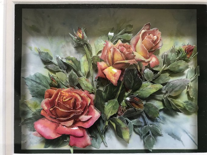 3 9 せっかくだから過去に作ったシャドーボックスその2 ひまわりの後ぐらい、やっぱり5年ぐらい前に作ったもの🌹 今までいくつか作ってきたけど、1番気に入っているやつ✨ #シャドーボックス #バラ 19/01/14 18:12