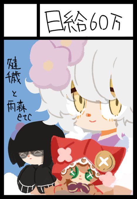 3 3 「け-43」日給60万 こんな感じの絵が描いてある本?とネーム本でます ペラッペラなんで多分2冊で200円くらい 訳わからん木の板持ってきてるのでアナログ原画的なのも午後から売ります #にじそうさく07 23/05/05 06:51
