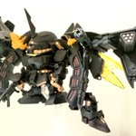 #ガンプラ凄技テクニック 今回は、ディランザ一般機を使用して簡単なカスタマイズしてみました。 拳は、オプションパーツ30mm12より流用。 バックパックは、ディランザ·ソルのもの。 塗装は、本体に黒と各部関節に金にしました。