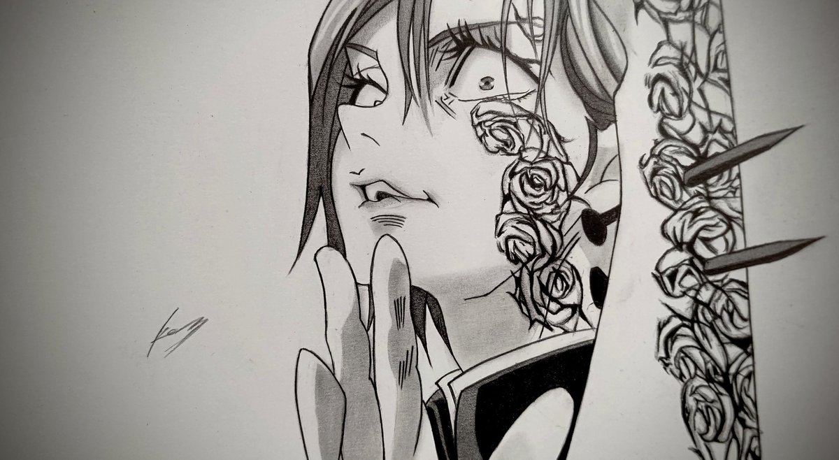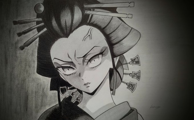 シャーペンで 堕姫ちゃん(梅)を描きました #堕姫 #鬼滅の刃 #鬼滅の刃イラスト #模写 #シャーペン画