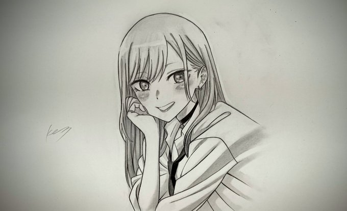 シャーペンで 『その着せ替え人形は恋をする』 まりんちゃんを描きました #着せ恋 #模写 #シャーペン画
