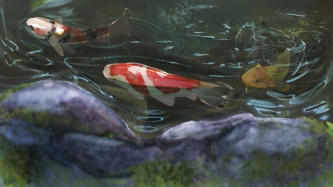 4 11 #風景イラスト #創作 鯉と池 22/08/12 15:45
