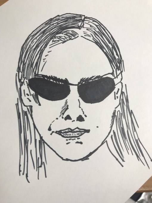 本当はマトリックスのトリニティになってTLでからかってる奴らを排除しに行く秋葉様描きたかったけど普通にトリニティになったから没にしたけど顔だけ描いたから一応置いとく #遠野秋葉生誕祭2018