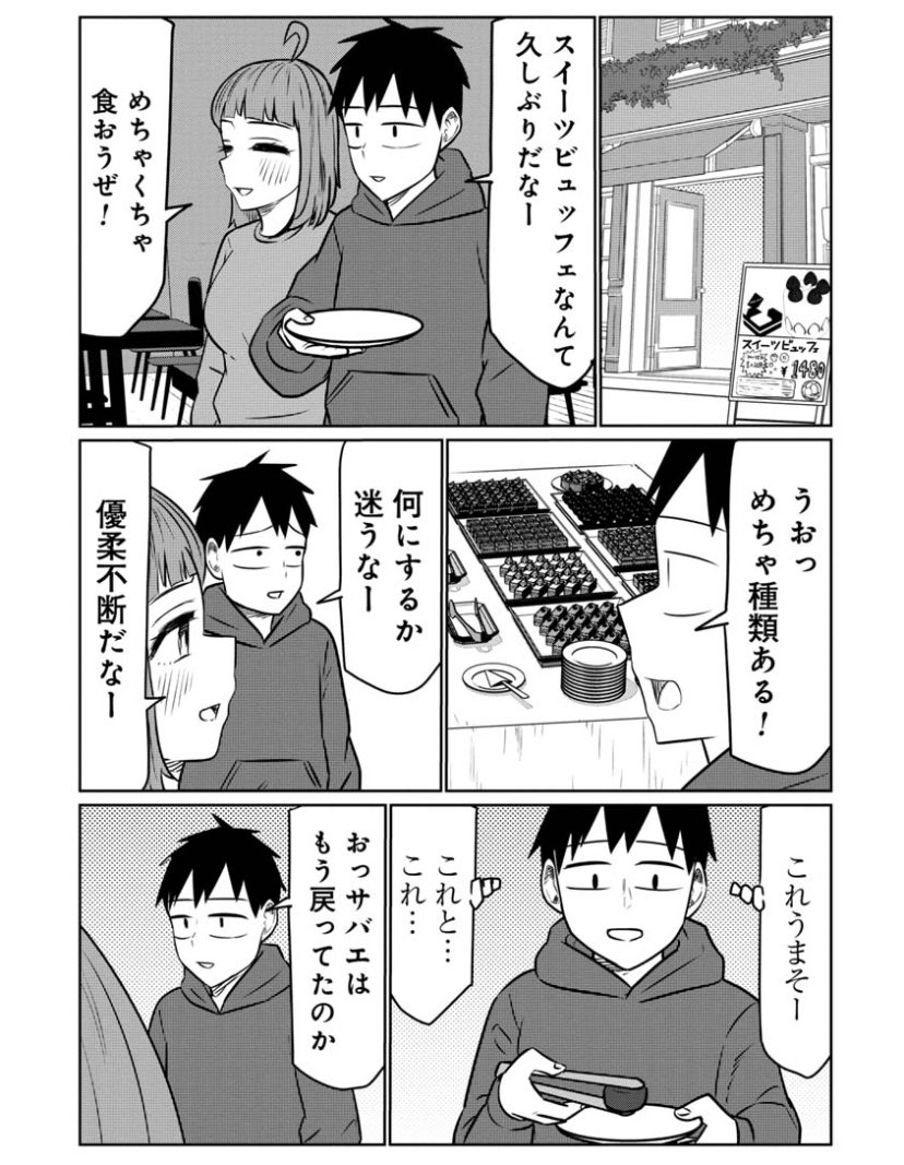 サバエとヤッたら終わる128話更新されました! スイーツビュッフェの店に来たサバエと宇治 どのスイーツを食べるか迷う宇治だが、その頃サバエは… この後衝撃の展開が! バレンタインにぴったりのお話! 続きはこちらから! kuragebunch.com/episode/316190… 129話の先読みもポイントでできます!