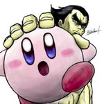 カービィと三島一八 #カービィ #kirby #星のカービィ #kirbysdreamland #カズヤ #三島一八 #kazuya #mishimakazuya #鉄拳 #TEKKEN #大乱闘スマッシュブラザーズ #スマブラ #SuperSmashBros #イラスト #おえかき #illustration #sketch #drawing #artwork #game #NintendoSwitch